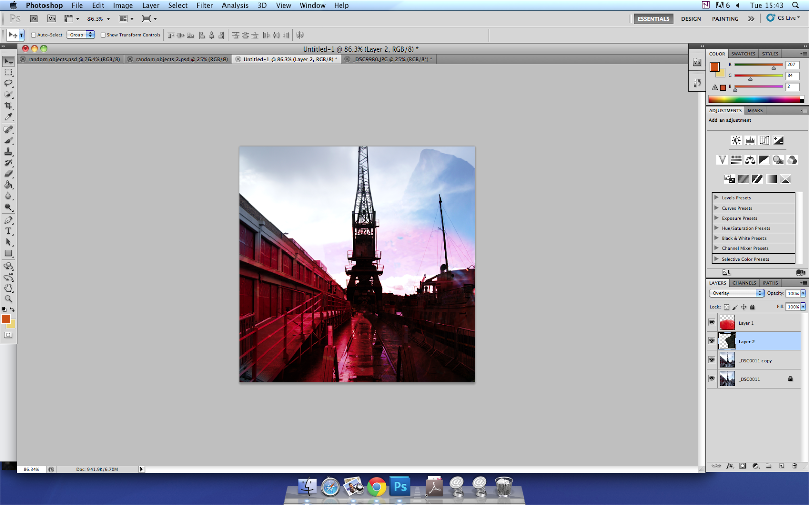 Using the same technique on the previous collage I created a red circle at the top-middle of the collage and applied the blending mode of multiply to get this desired effect.